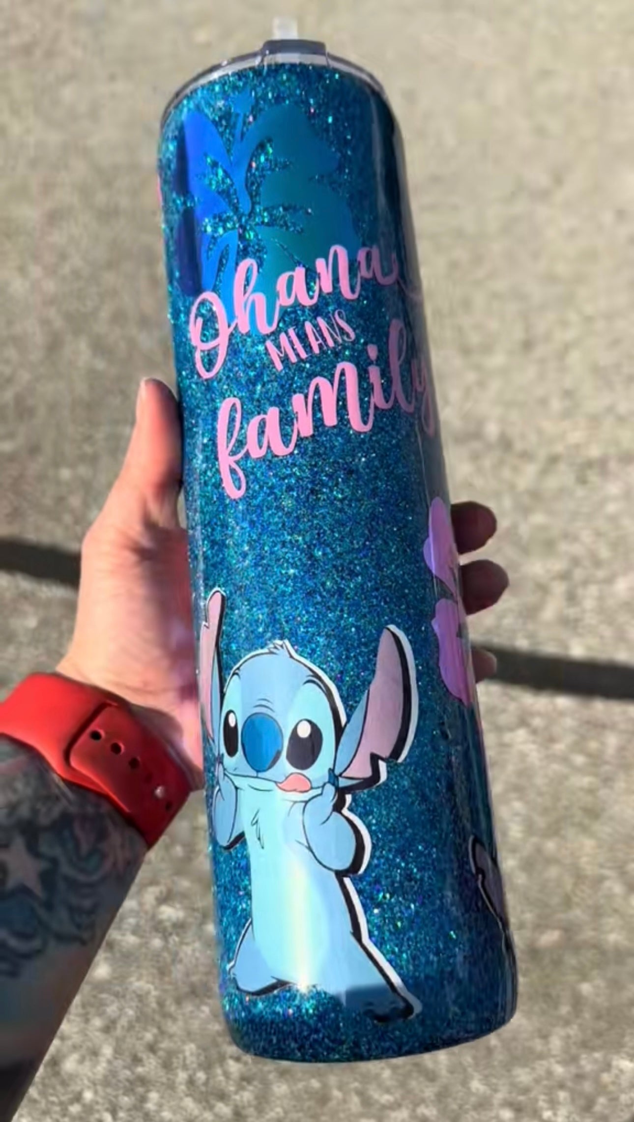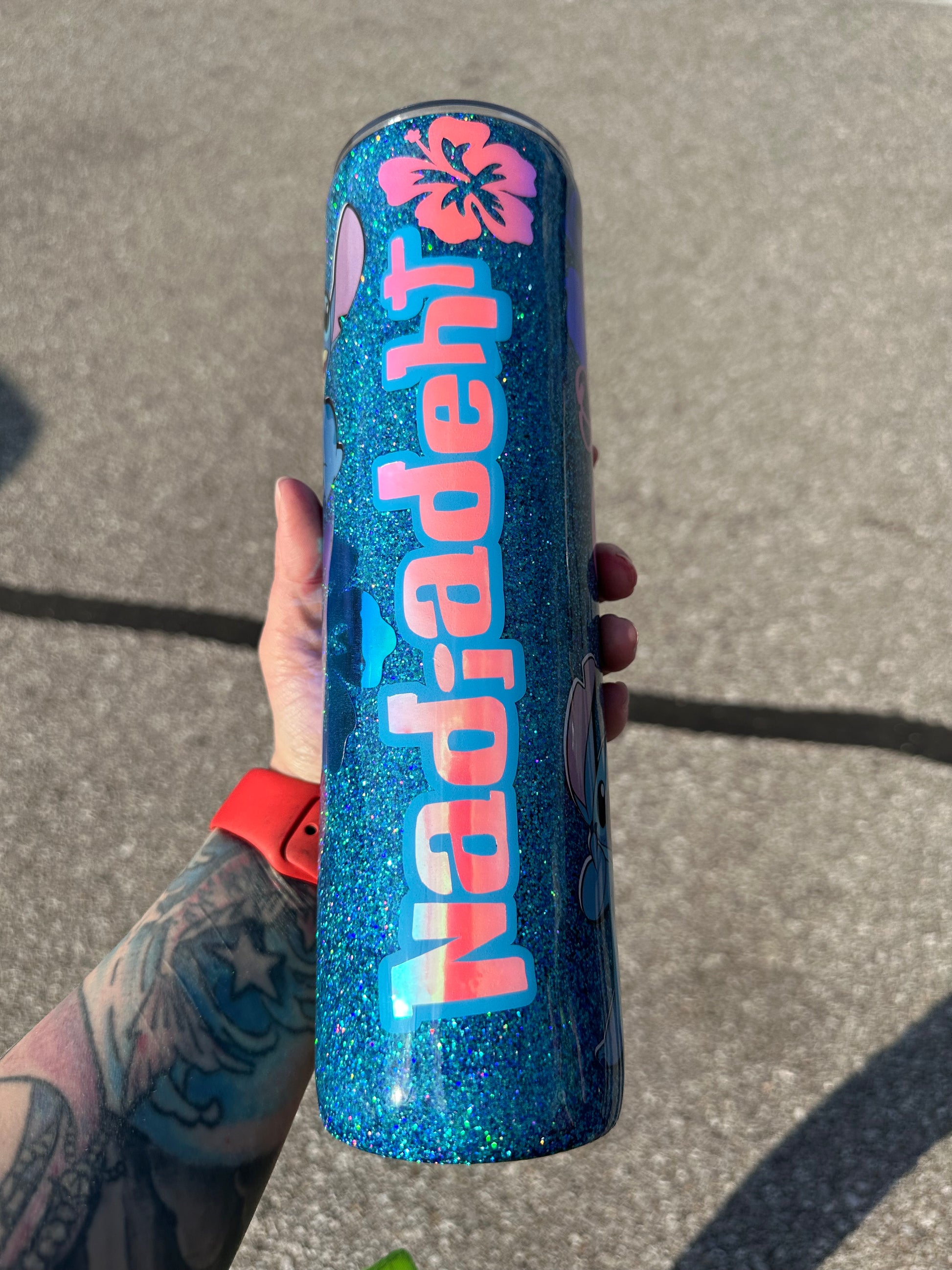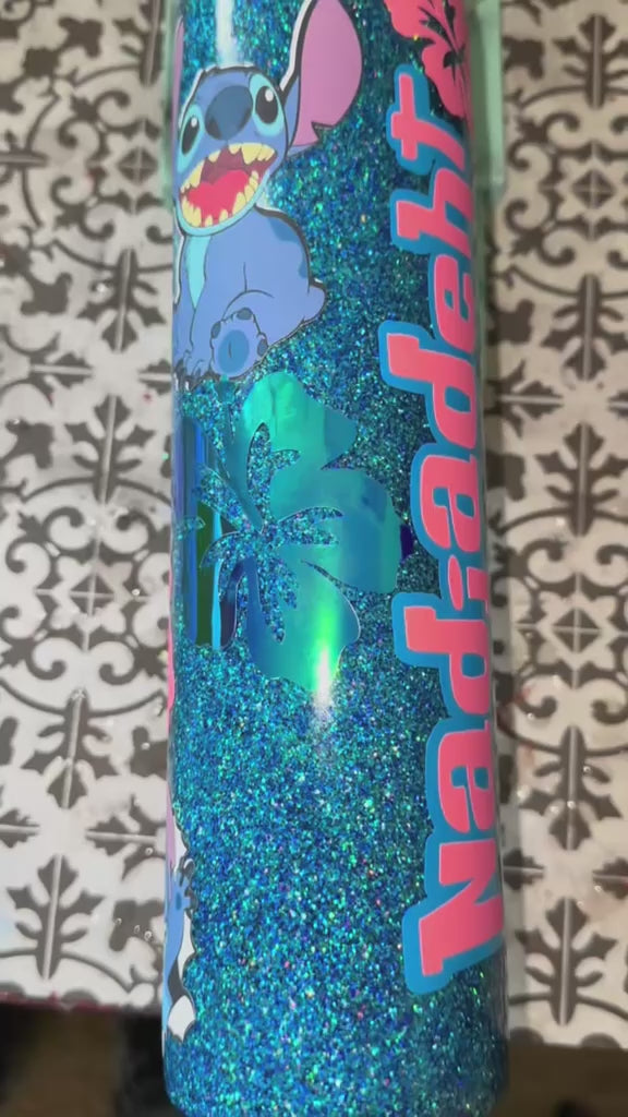 Bring the magic of Ohana everywhere you go with this adorable 32 oz Stitch Glitter Tumbler! Featuring shimmering glitter, high-quality Stitch decals, and a custom name of your choice, this tumbler is the perfect blend of cute, personal, and practical. Whether you’re sipping iced coffee or staying hydrated on the go, Stitch has your back!